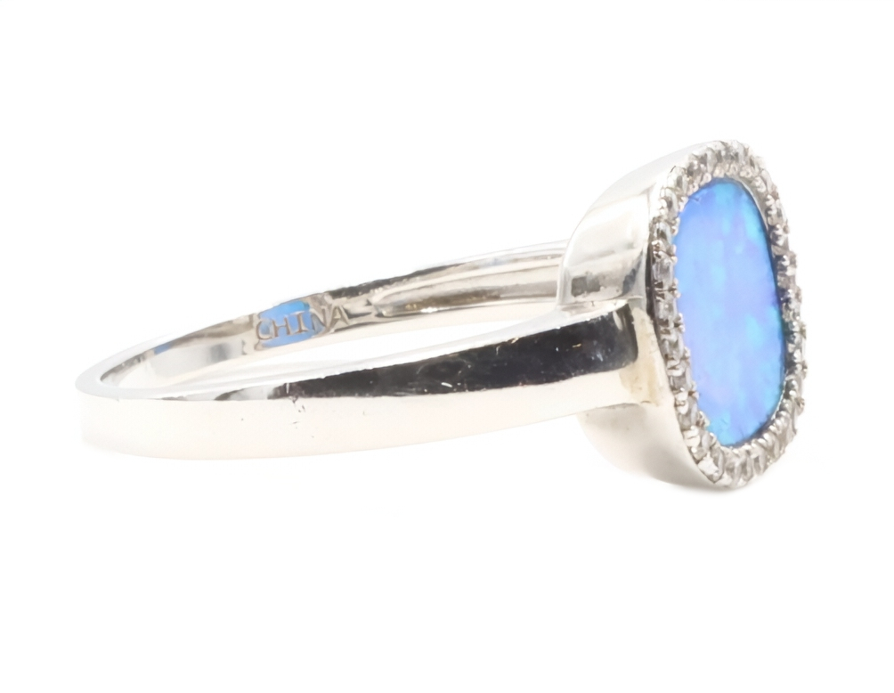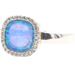 Women's Sterling Silver Blue Synthetic Opal & Round CZ Halo Statement Ring. This ring is a size 8.