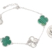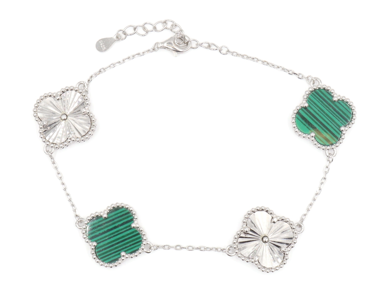 Women's Sterling Silver Clover Cut 15.4mm Faux Malachite 925 Station Bracelet. This bracelet has an adjustable wearable length of 7" to 8"