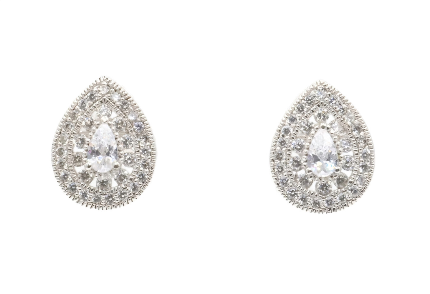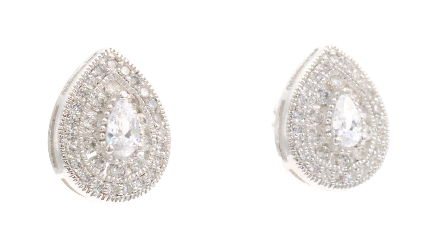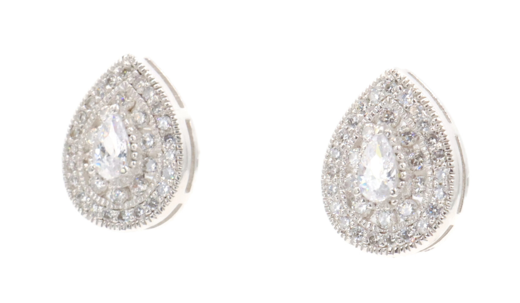 Women's Sterling Silver Teardrop Shaped CZ 925 Micro Pave Stud Earrings | USA Pawn